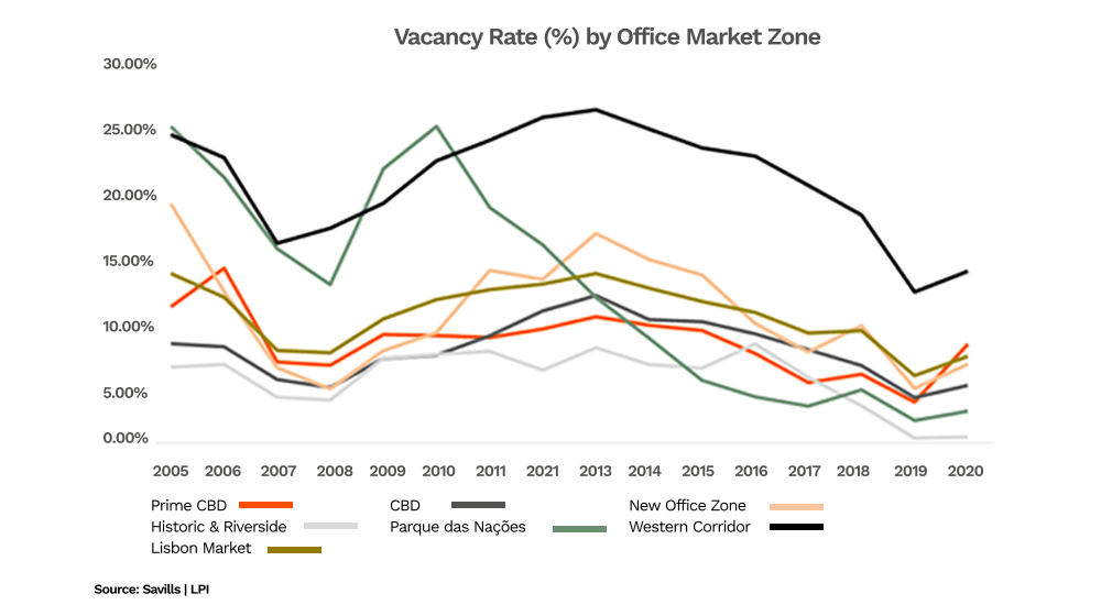 Like all other major European cities, Lisbon has suffered from the global pandemic. Portugal’s economy contracted by 7.6% in 2020 and Lisbon’s office market felt the weight of that – occupation rates fell 29% annually and transaction volumes were at their lowest since 2001.